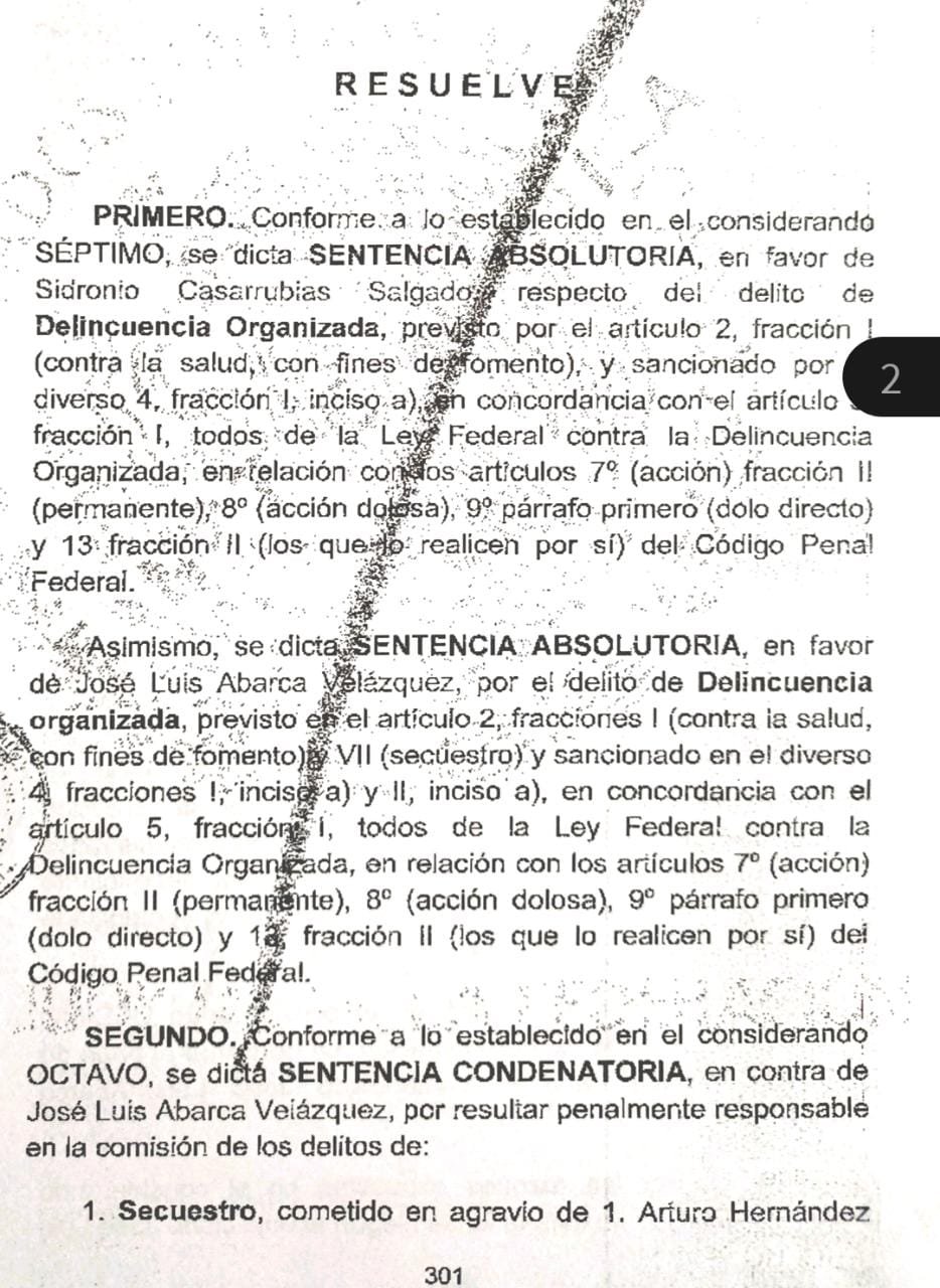 El juzgador determinó que el experredista es plenamente responsable del secuestro de Arturo Hernández Cardona, Ángel Román Ramírez, Rafael Balderas Román, Héctor Arroyo Delgado, Efraín Amates Luna y Nicolás Mendoza Villa, ocurrido en 2013 en el municipio de Iguala.