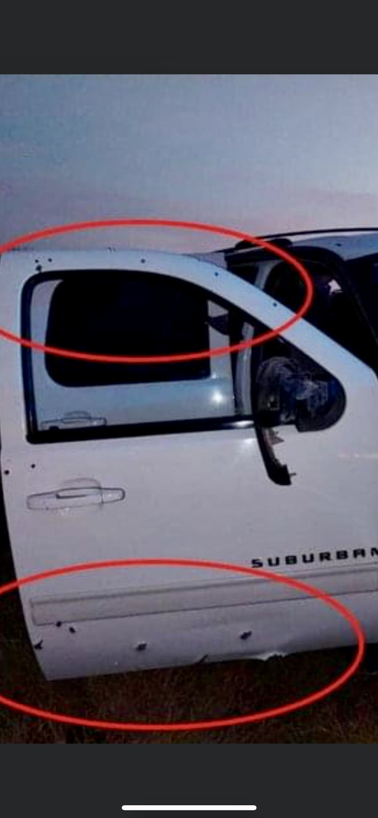 El vehículo oficial resultó con múltiples impactos por arma de fuego.
