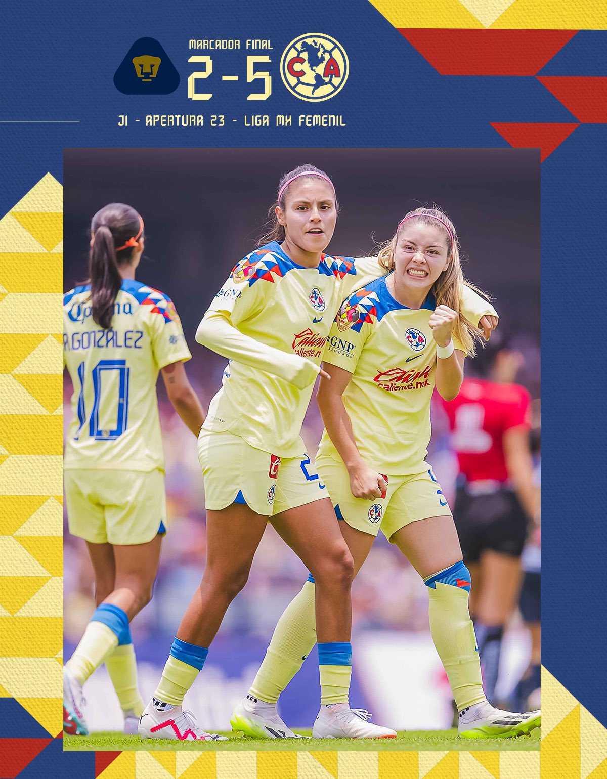 Pumas y América inauguraron su campaña dentro del torneo Apertura 2023 de la Liga MX Femenil con un festival de goles, mismo que favoreció al cuadro dirigido por Ángel Villacampa con un marcador final de 2-5, por lo que las campeonas sumaron su primera victoria del certamen ante el acérrimo rival de la capital
