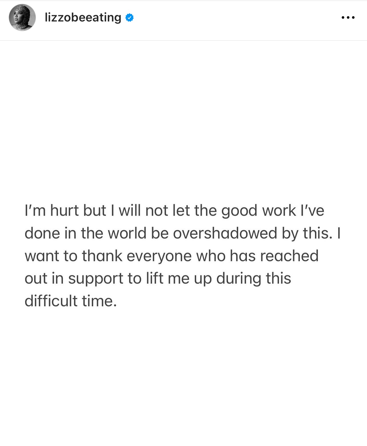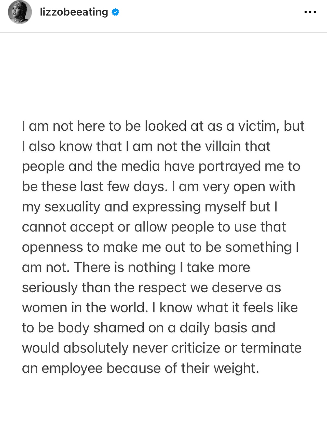 Lizzo puntualizó en su comunicado que como artista se toma sus actuaciones y su música de forma muy seria, y que esta pasión por lo que hace suele venir acompañada de trabajo duro y estándares altos.