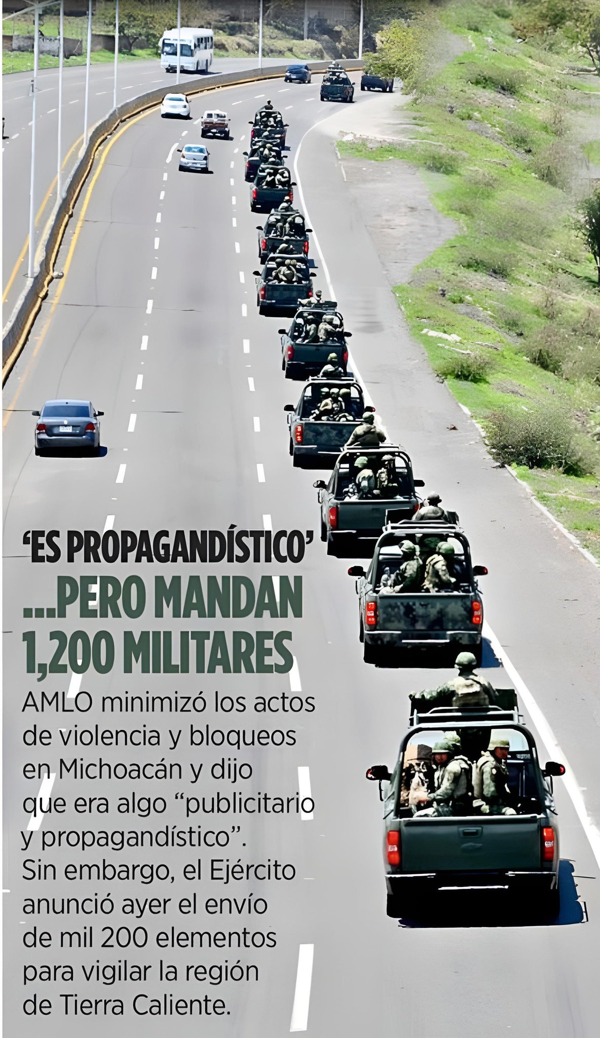 La Secretaría de la Defensa Nacional (Sedena) informó el lunes que mil 200 efectivos de la Guardia Nacional (GN) y el Ejército mexicano para reforzar la seguridad en el estado de Michoacán, luego de la violencia y bloqueos del fin de semana pasado que afectó la zona de Tierra Caliente.