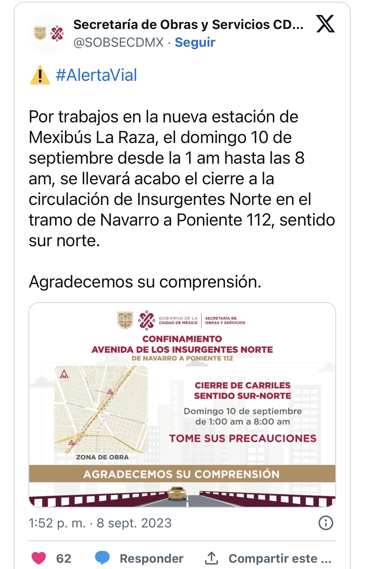 Ciudadanos de la Ciudad de México alerta porque algunas estaciones del Metrobús no dará servicio mañana 10 de septiembre
