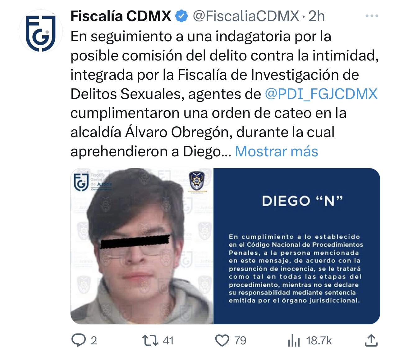 “La fiscalía informó de la detención de Diego “N”, relacionado con diversas carpetas de investigación por editar, con inteligencia artificial, fotos de sus compañeras”, escribió Batres Guadarrama.