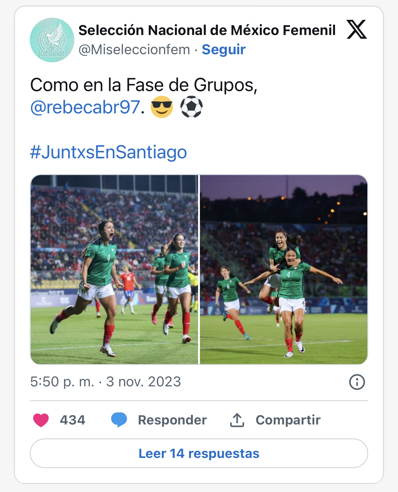 La Selección Femenil Mexicana de Futbol brindó una Final soberbia ante Chile y se impuso0-1 para conquistar la medalla de oro en los Juegos Panamericanos Santiago 2023, la primera (dorada) en su historia en estas justas.