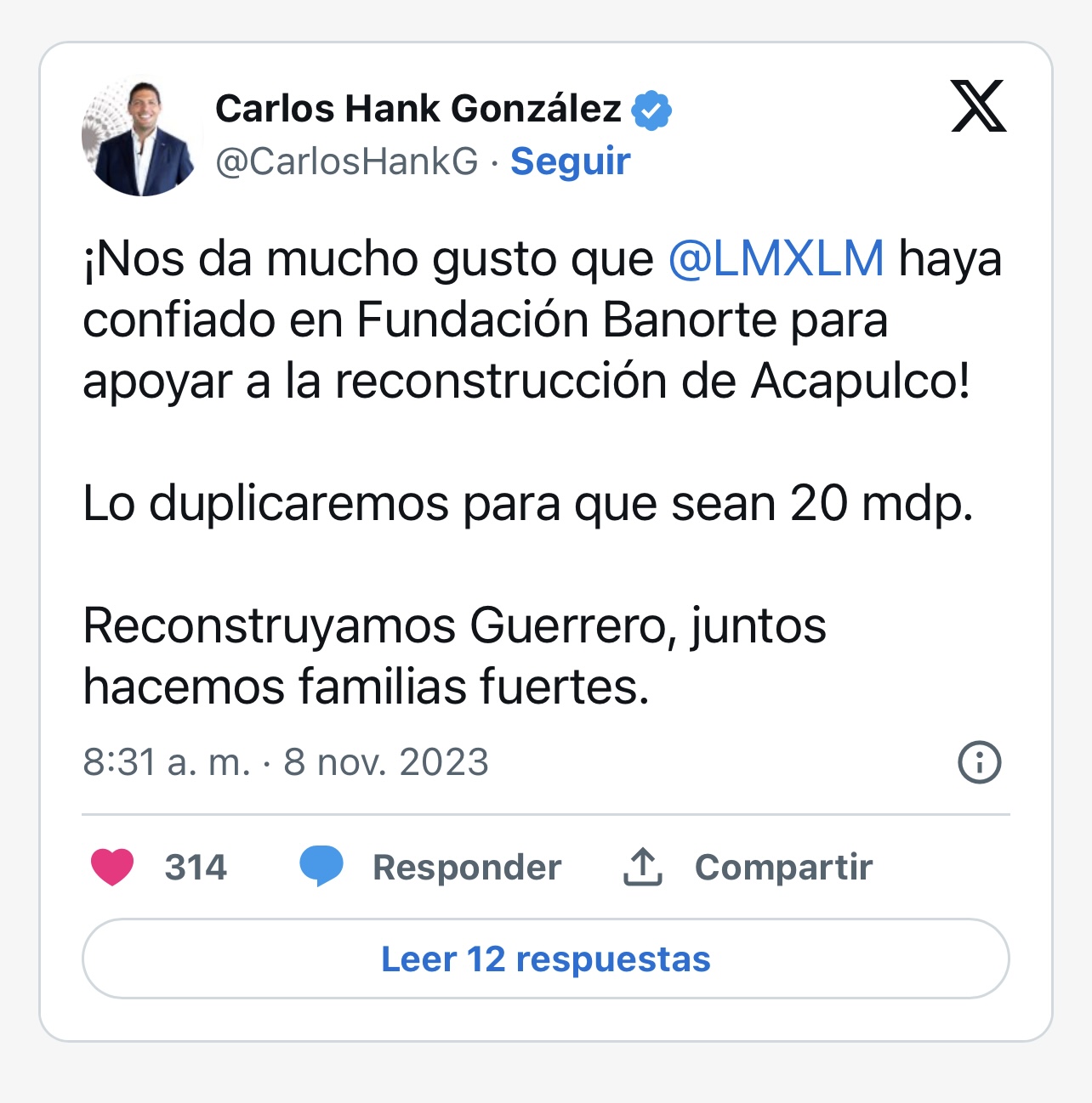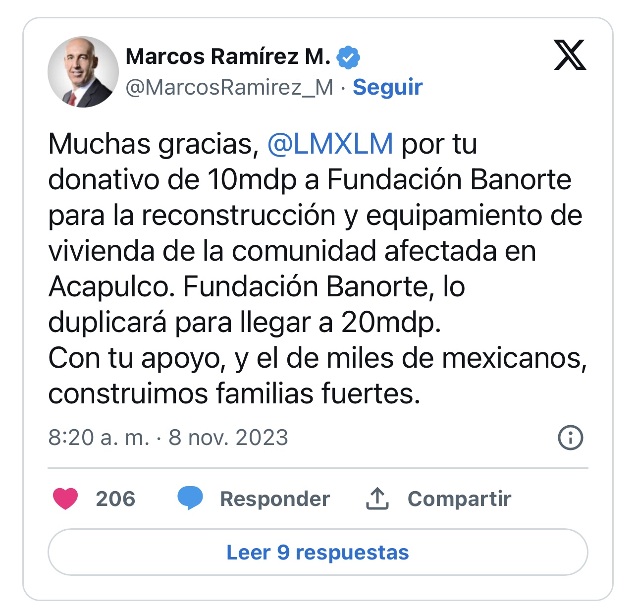 En total, Fundación Banorte acumula 82 millones de pesos en ayuda para Acapulco.