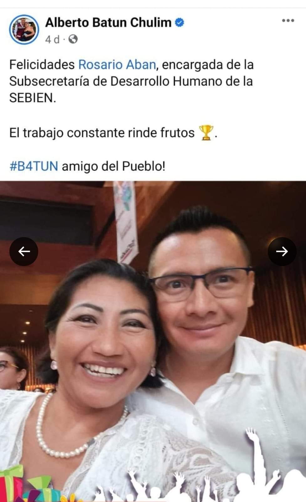 “Nada sería posible sin el apoyo de ustedes, que son mi fuente de inspiración y lucha (…) es tiempo de que se represente con dignidad y honor nuestras raíces”, escribió.