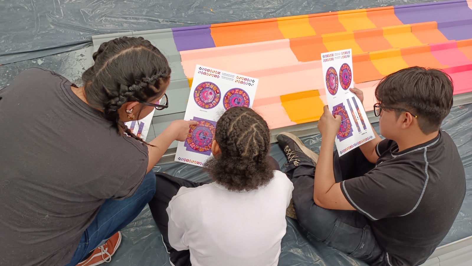Poco más de 1000 niñas, niños y jóvenes de los Semilleros Creativos de Artes visuales de todo el país participan en el diseño y creación del mural El ombligo de la luna, que se colocará en el techo del foro al aire libre del Pabellón de Cultura Comunitaria que se prepara en Avenida Constituyentes 270 en la colonia Miguel Hidalgo, en la Ciudad de México.