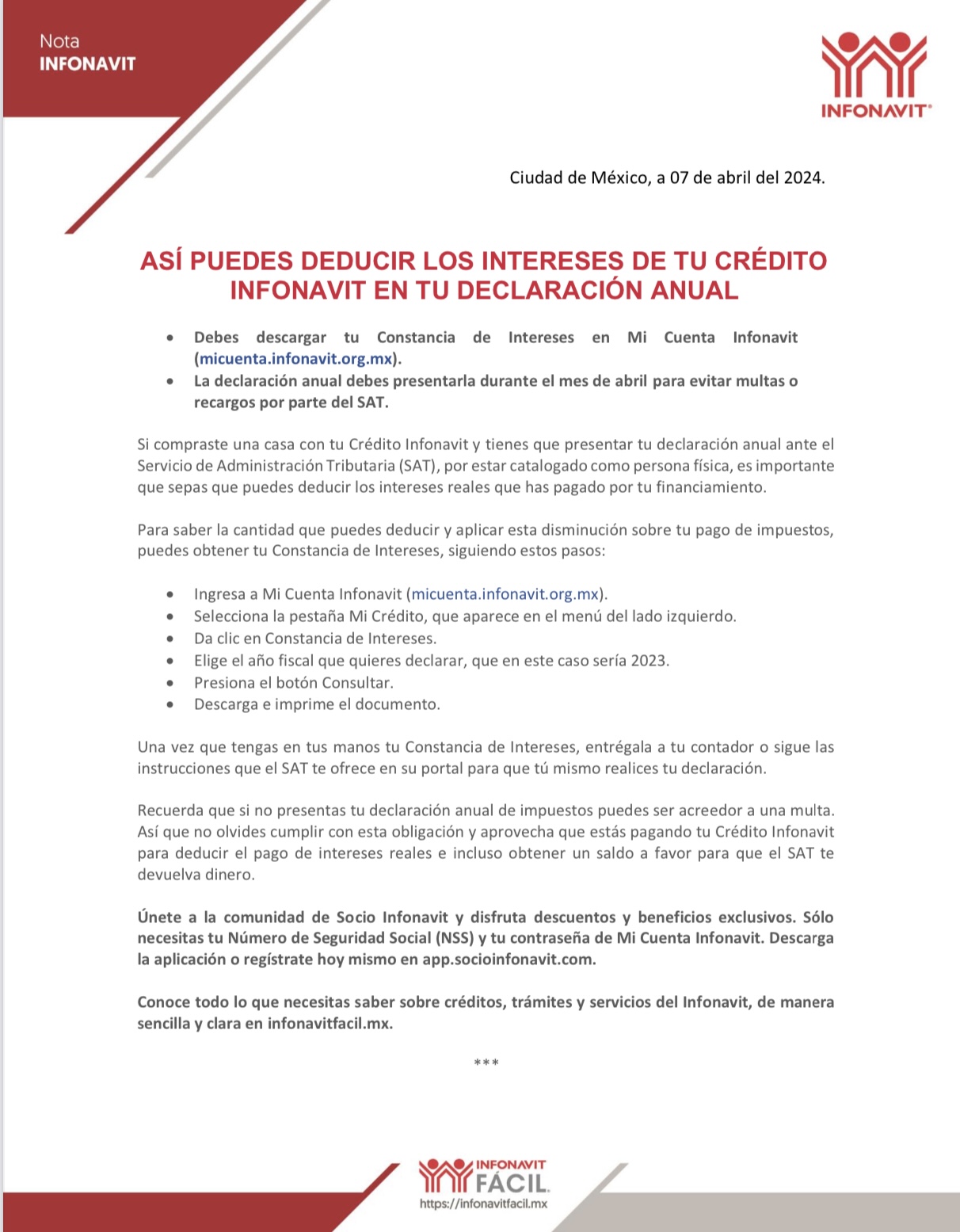 ASÍ PUEDES DEDUCIR LOS INTERESES DE TU CRÉDITO INFONAVIT EN TU DECLARACIÓN ANUAL