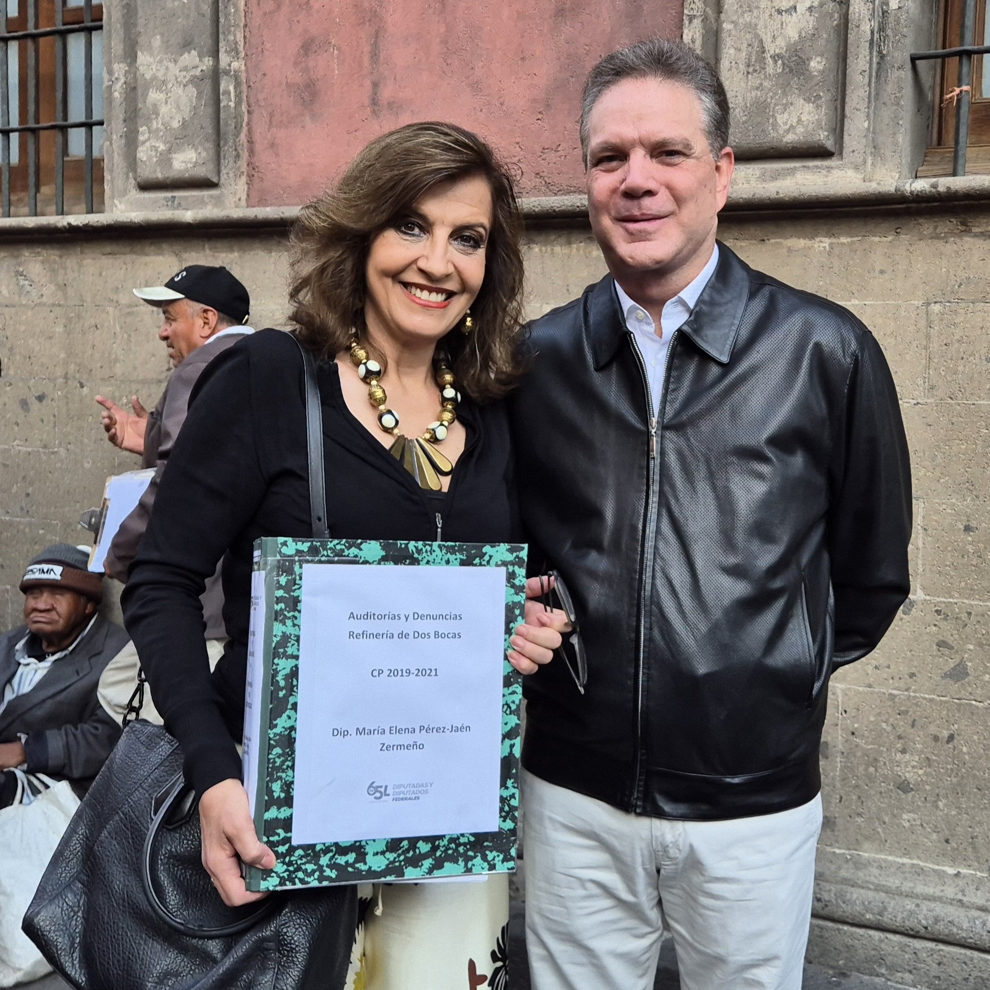La diputada panista María Elena Pérez-Jaén y el empresario Arturo Castagné buscan entregar a AMLO pruebas de supuesta corrupción de Rocío Nahle, pero no los dejaron pasar a Palacio Nacional