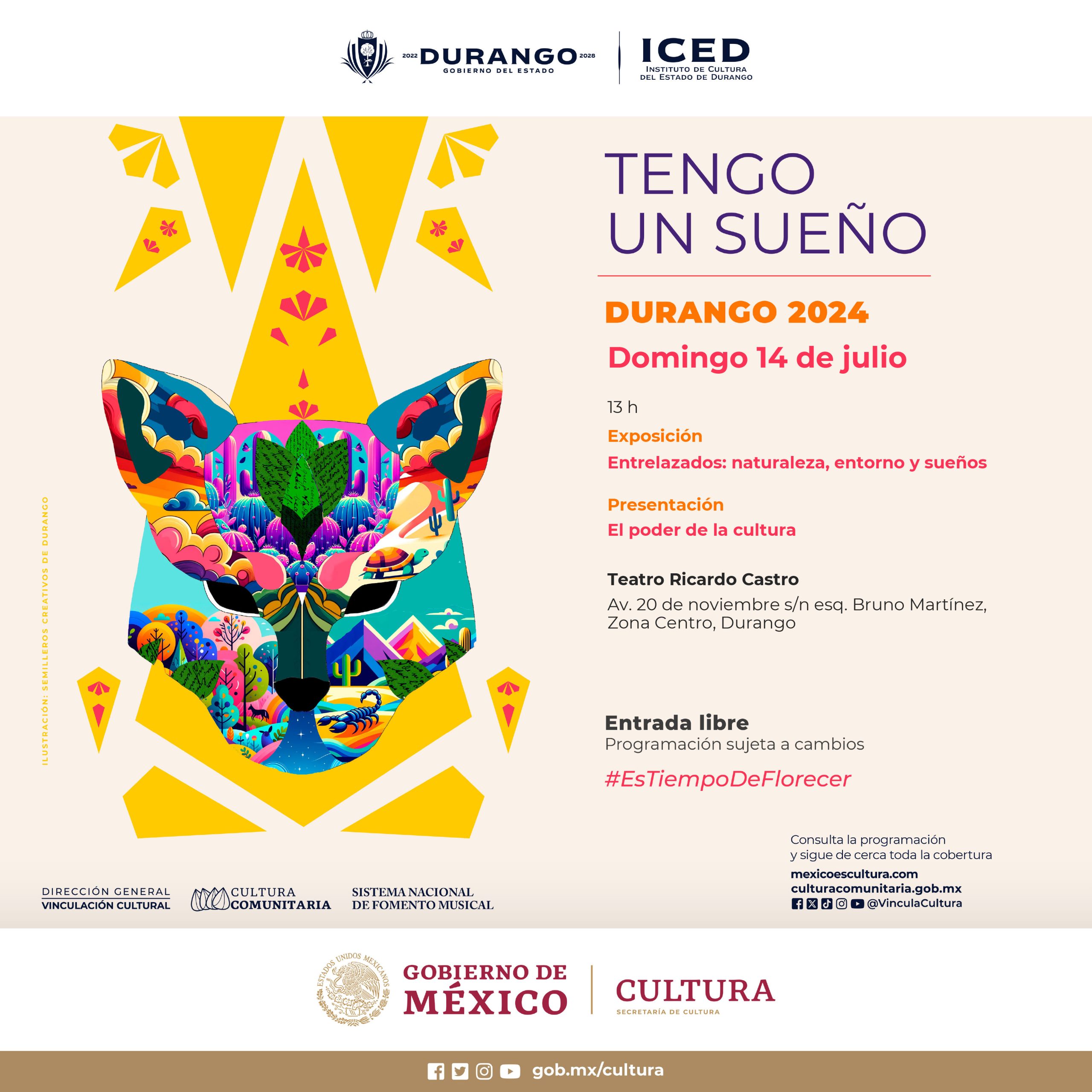 Este 14 de julio dará inicio Tengo un sueño Durango 2024 “El poder de la cultura”, uno de los 27 eventos estatales y biestatales en el país que forman parte del Festival Tengo un sueño 2024.