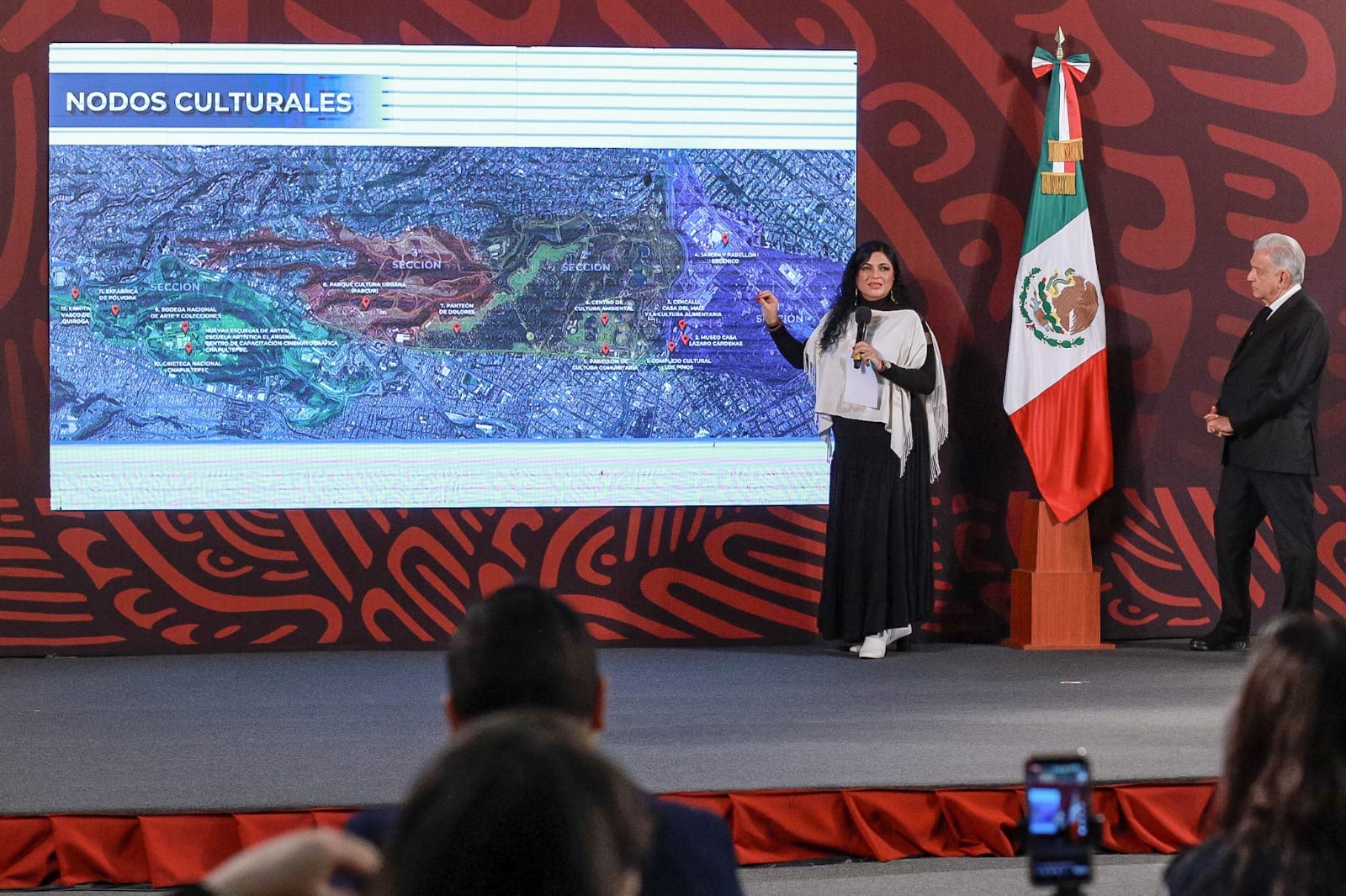 En este proyecto, dijo se trabajaron 12 nodos culturales nuevos y se atendió la infraestructura ya existente, como la red de museos y los teatros. Recordó que fue con la apertura al pueblo de México del Complejo Cultural Los Pinos, antigua residencia oficial de los presidentes, que se pudieron realizar acciones para interconectar las Tres Secciones existentes y sumar la Cuarta Sección, una donación de la Secretaría de la Defensa Nacional. Con todo esto, dijo, iniciaron los trabajos para conformar el parque cultural más grande de América.