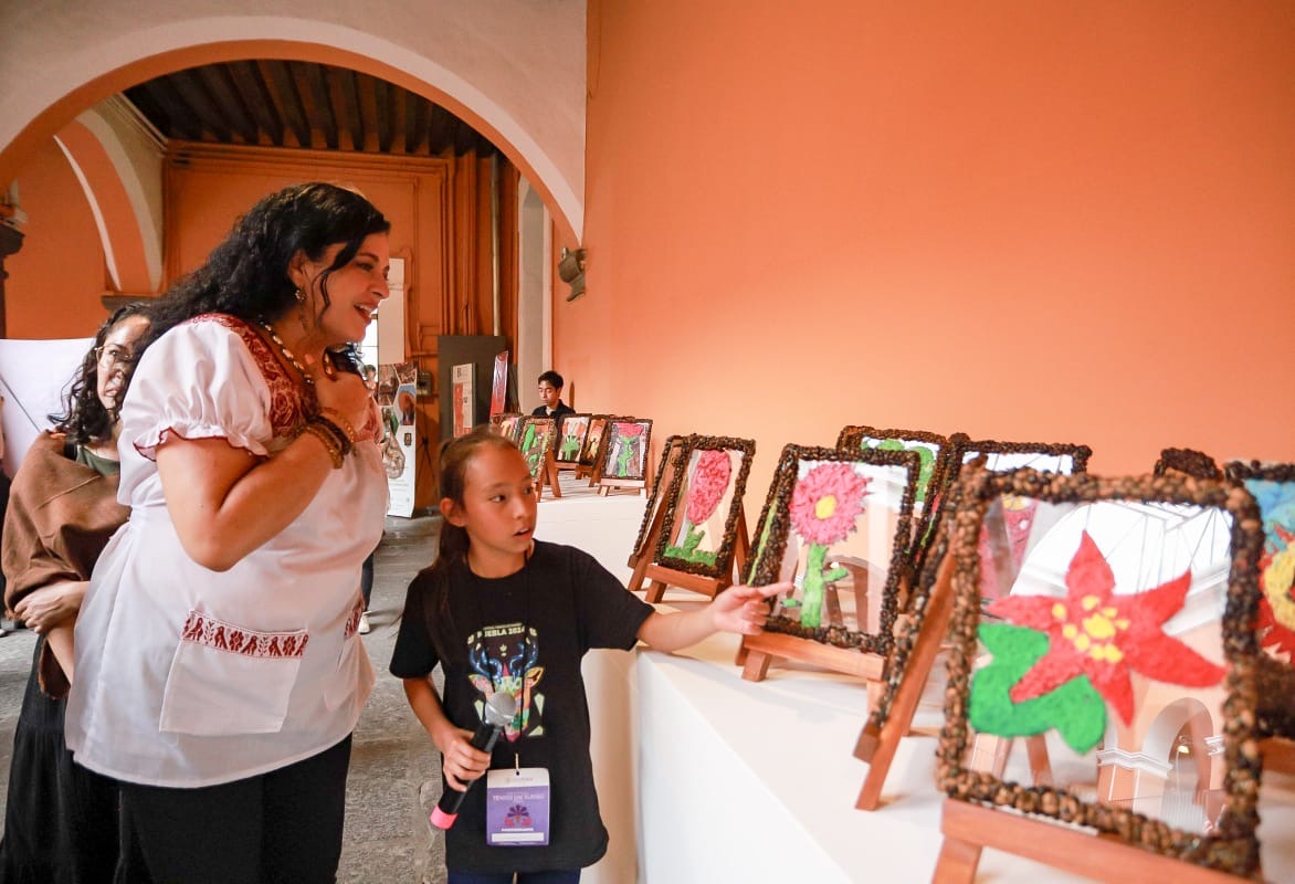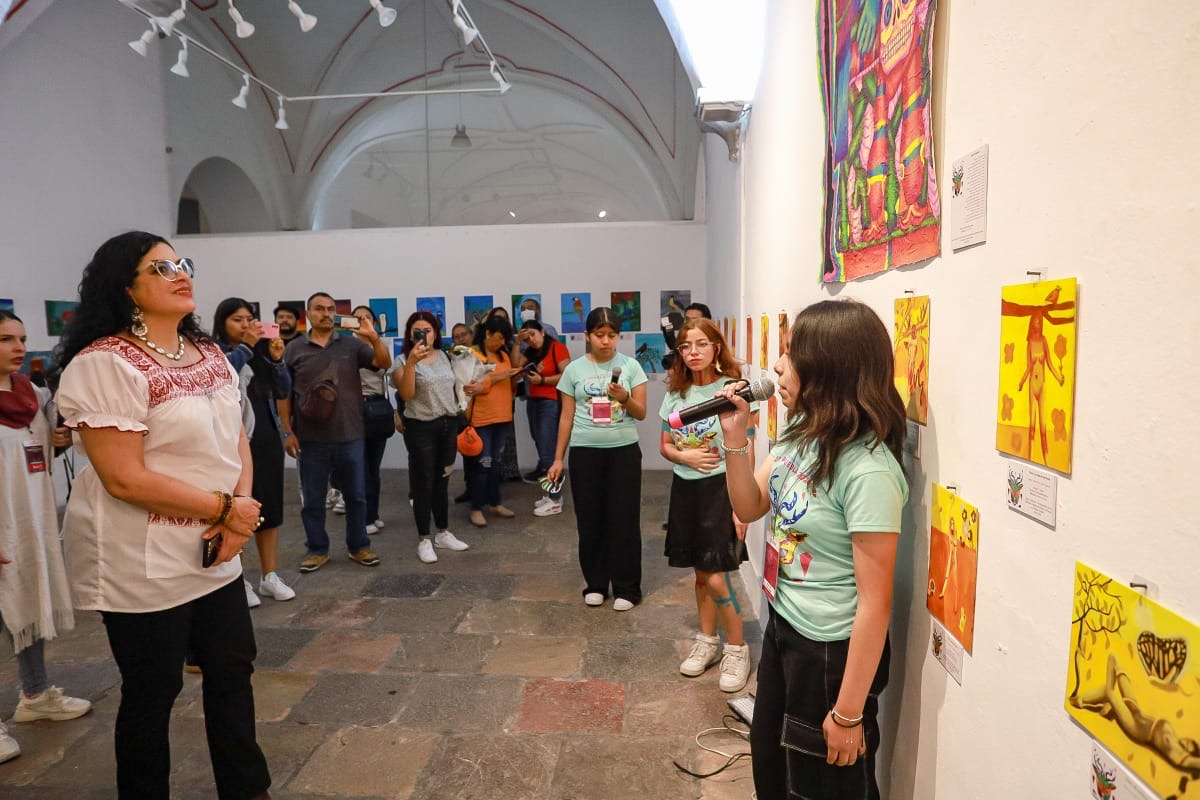 Para seguir con el programa, el público se trasladó a la Casa de la Cultura Pedro Ángel Palou Pérez, para recorrer la exposición “Mi tierra, mis raíces, mi entorno”, compuesta por poco más de 200 obras plásticas de las y los integrantes los Semilleros Creativos en las disciplinas de dibujo, fotografía, lengua náhuatl, literatura creativa, muralismo, pintura, producción audiovisual, teatro y textiles, provenientes de los municipios de Hueyapan, Ixcamilpa de Guerrero, Palmar de Bravo, Puebla, San Andrés Cholula, Yehualtepec y Zoquitlán.