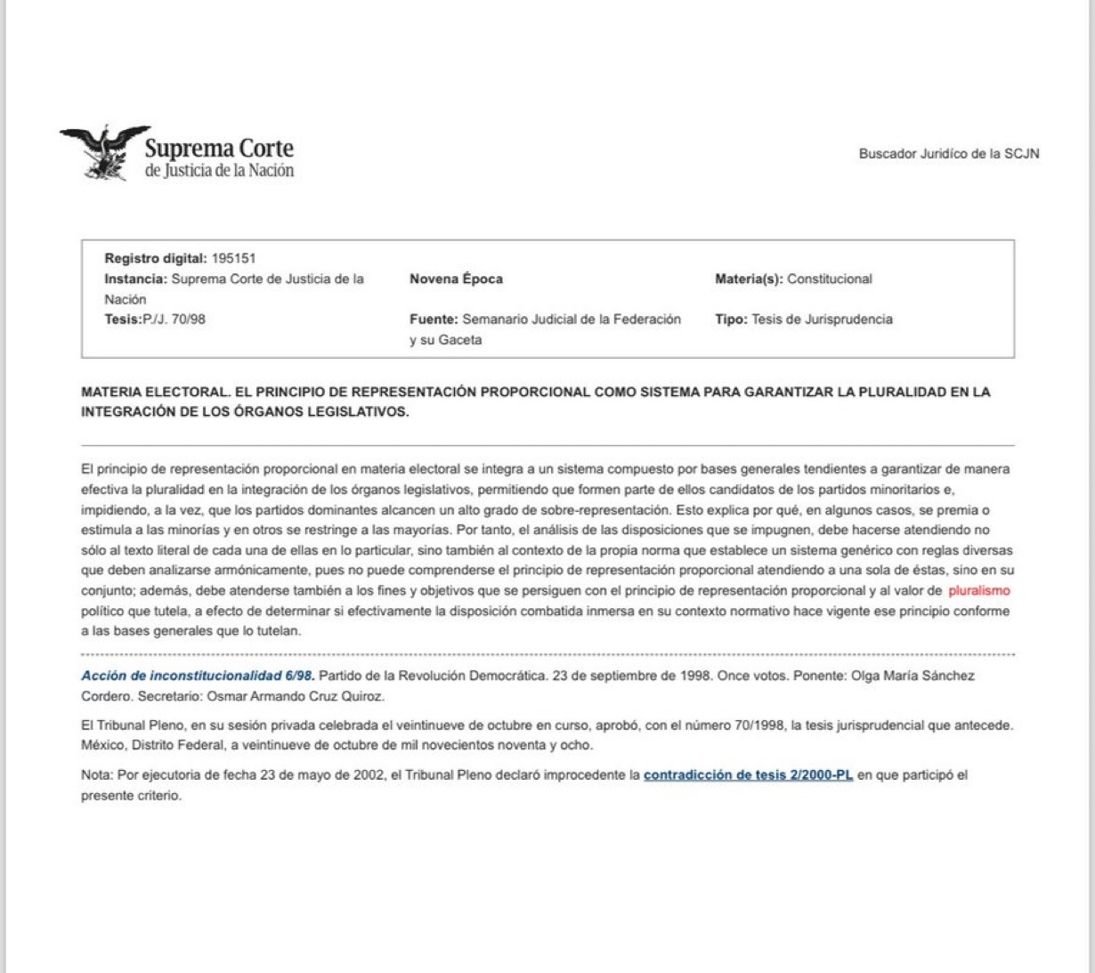 “El PAN tuvo 32 diputados de mayoría, le tocan 36 de representación proporcional ¿Quién está sobrerrepresentado? Digo, si usamos la palabra. El PRI ganó 9 distritos, le tocan 24. Bueno, el PRD uno nada más porque no le toca representación proporcional. Morena ganó 161 distritos, le tocan 87 con la fórmula. En total 248. La Constitución dice que no puede pasar de 300. ¿Morena se pasa de 300? No”, sostuvo.