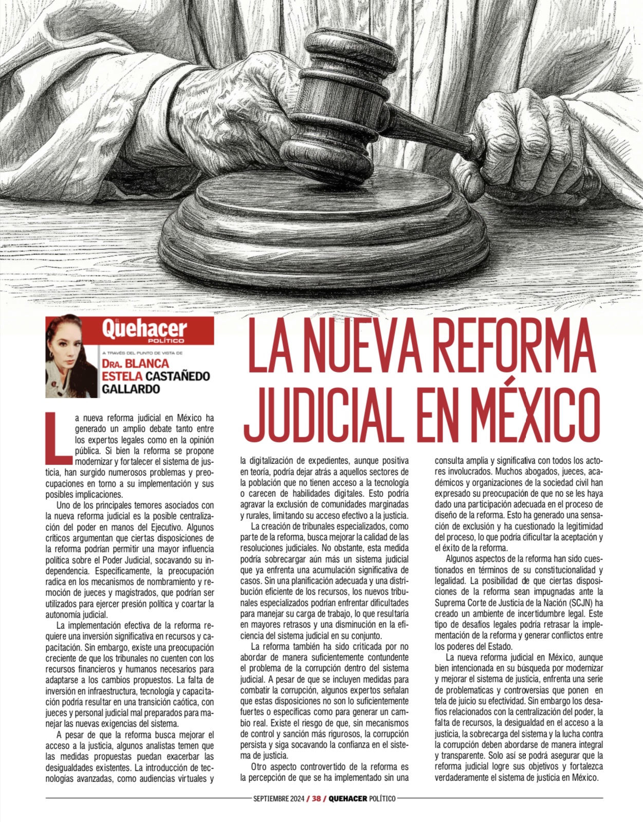 El Quehacer Político a través del punto de vista///Dra Blanca Estela Castañedo Gallardo///LA NUEVA REFORMA JUDICIAL EN MÉXICO