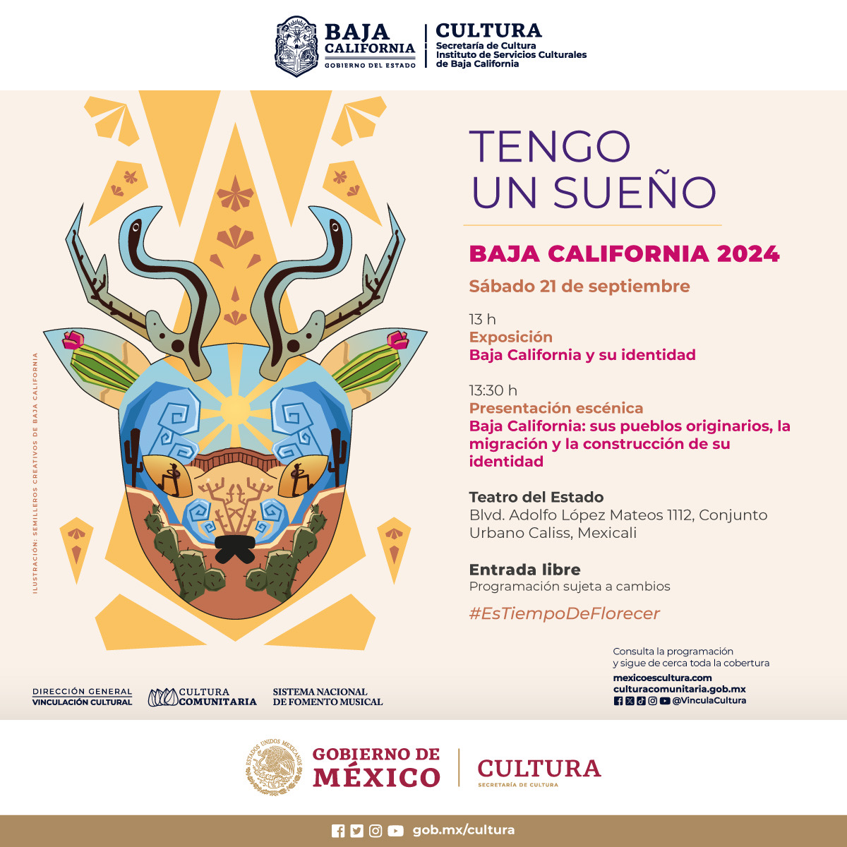 Con el objetivo de generar conexiones e intercambios creativos entre los distintos Semilleros del estado, este 21 de septiembre, niñas, niños y jóvenes artistas de los Semilleros Creativos llevarán a cabo Tengo un sueño Baja California 2024 “Sus pueblos originarios, la migración y la construcción de su identidad”, se trata del último de los eventos estatales en el país que formaron parte del Festival Tengo un sueño 2024.