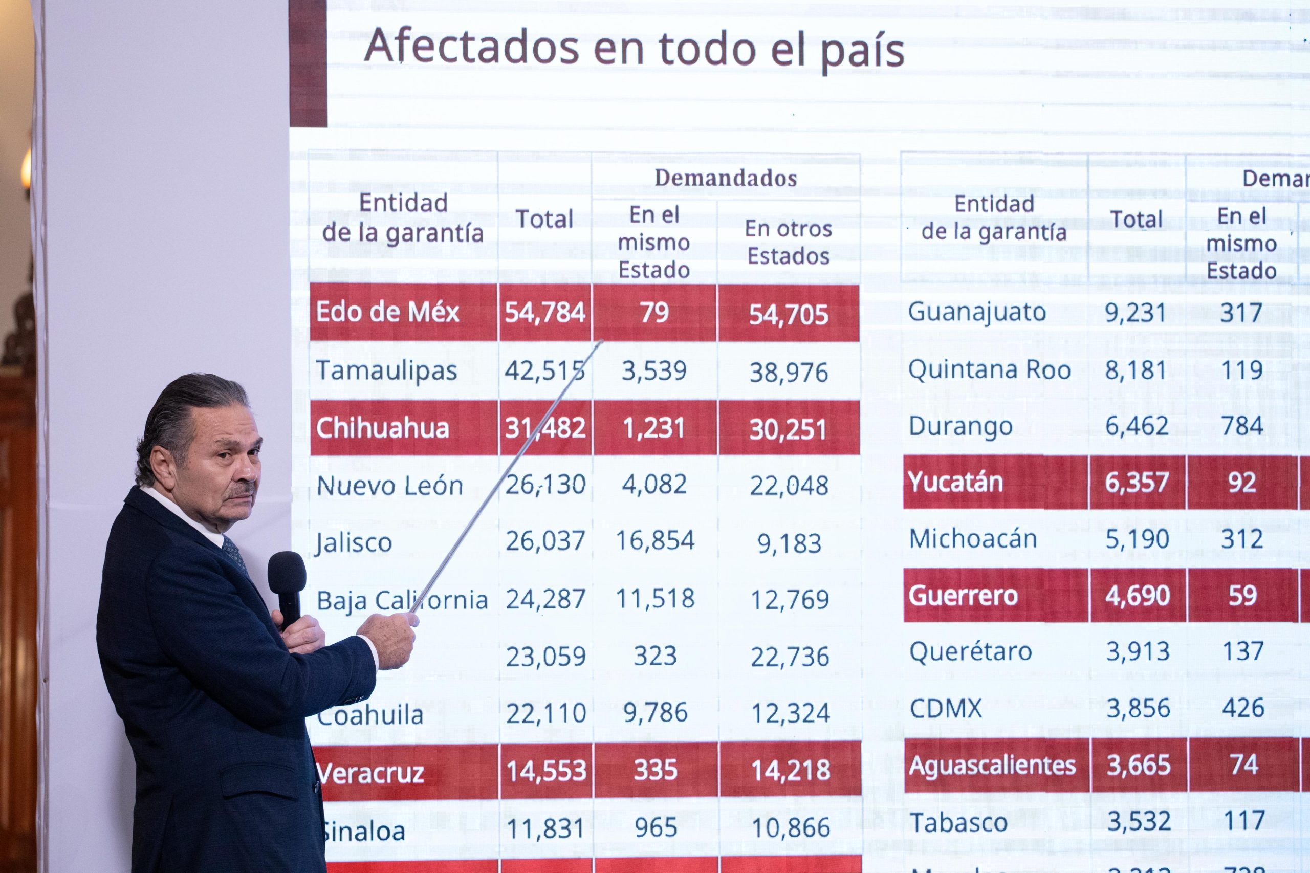El ingeniero Romero Oropeza informó que con esta estrategia de juicios masivos en total fueron afectadas 373 mil 812 personas acreditadas en todo el país, de las cuales 320 mil 127 fueron demandadas fuera de la entidad donde se encontraba su vivienda. El mayor número de personas afectadas se concentra en Estado de México, Tamaulipas, Chihuahua, Nuevo León y Jalisco.