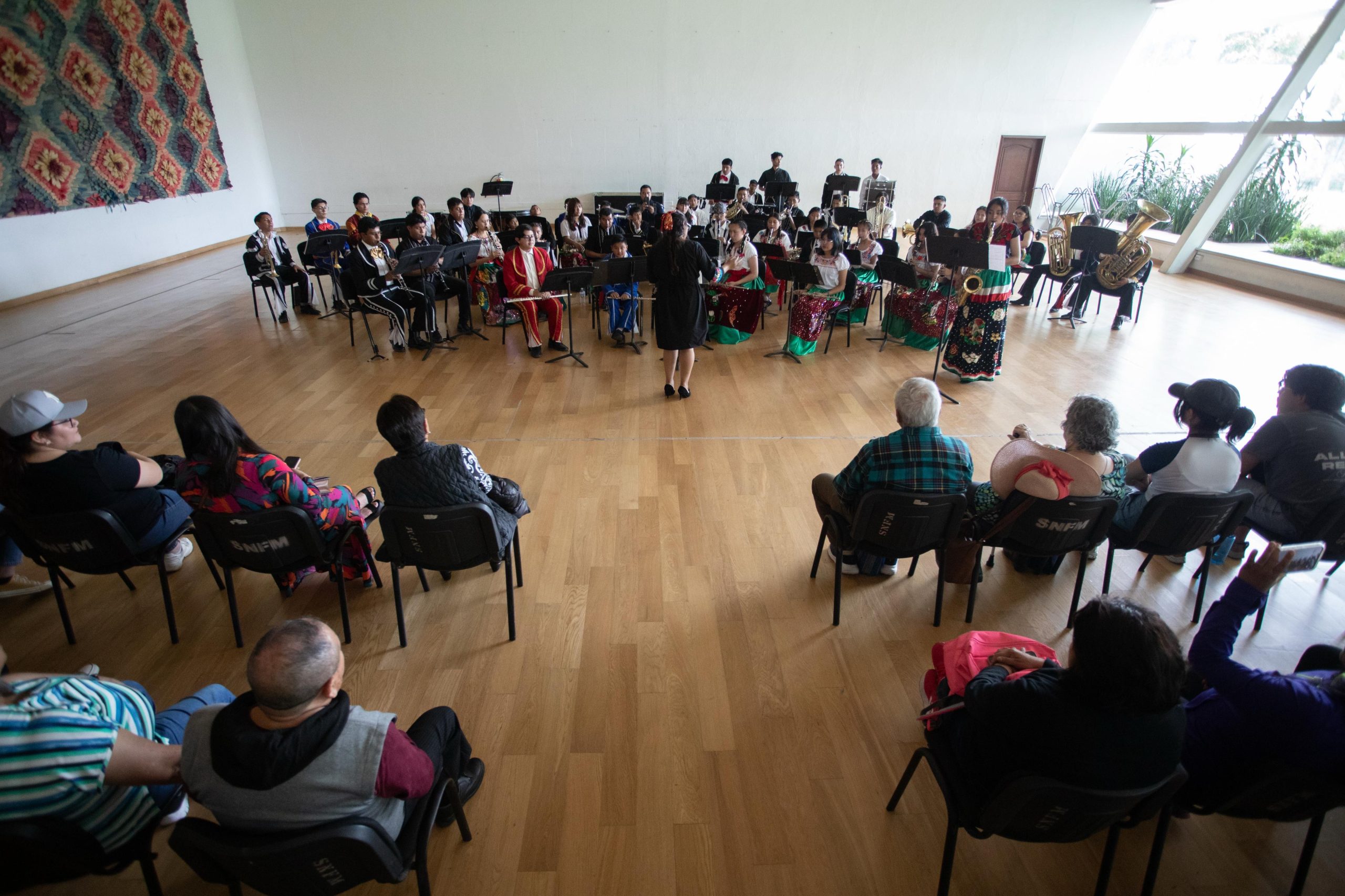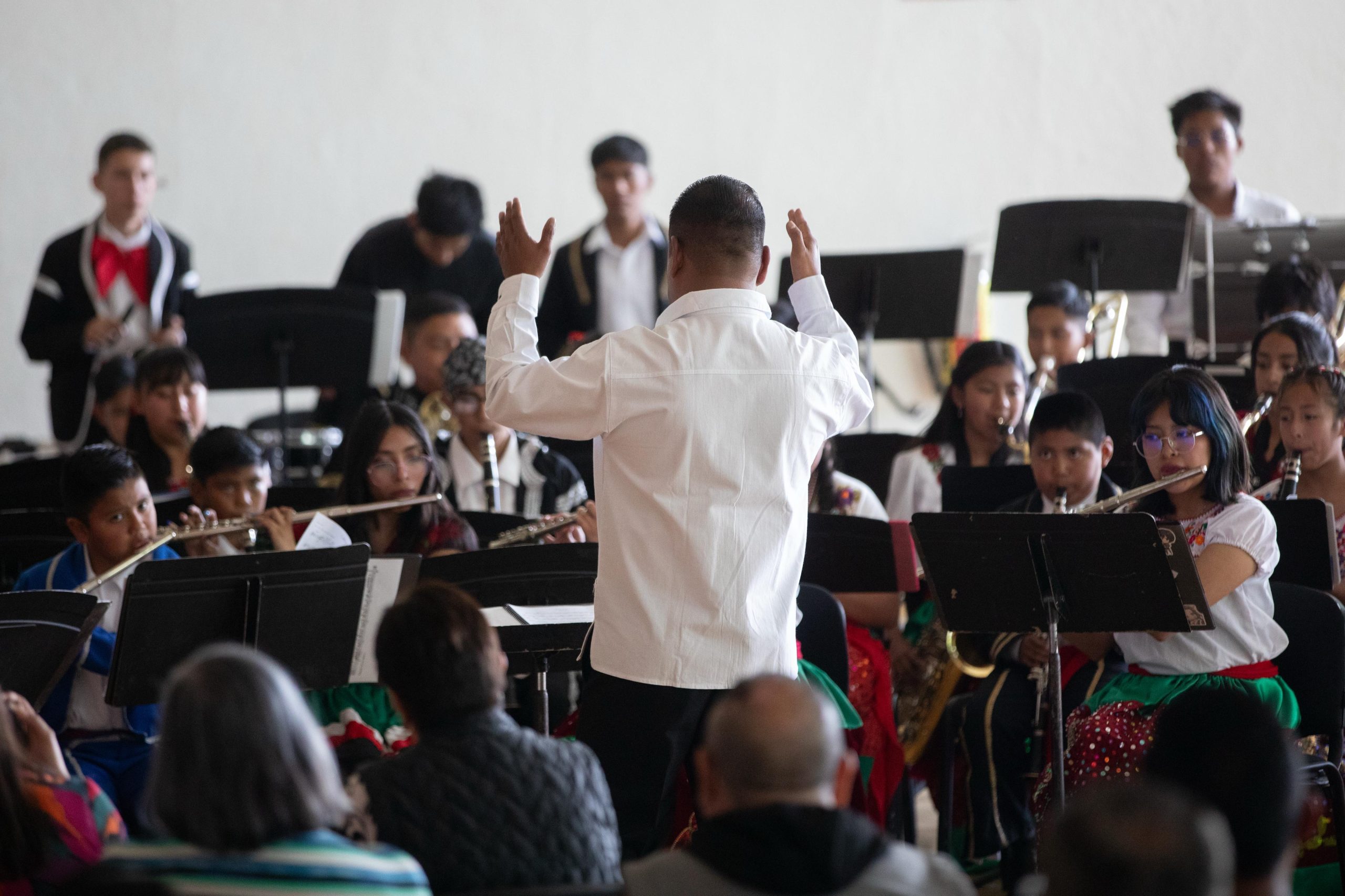 - Las niñas, niños y jóvenes del Semillero Banda Sinfónica Comunitaria interpretaron temas como Qué chula es puebla, Danzón Puebla, Así fue, Hasta que te conocí y La Sandunga, el últimocon el solo de saxofón de Génesis Juárez Díaz