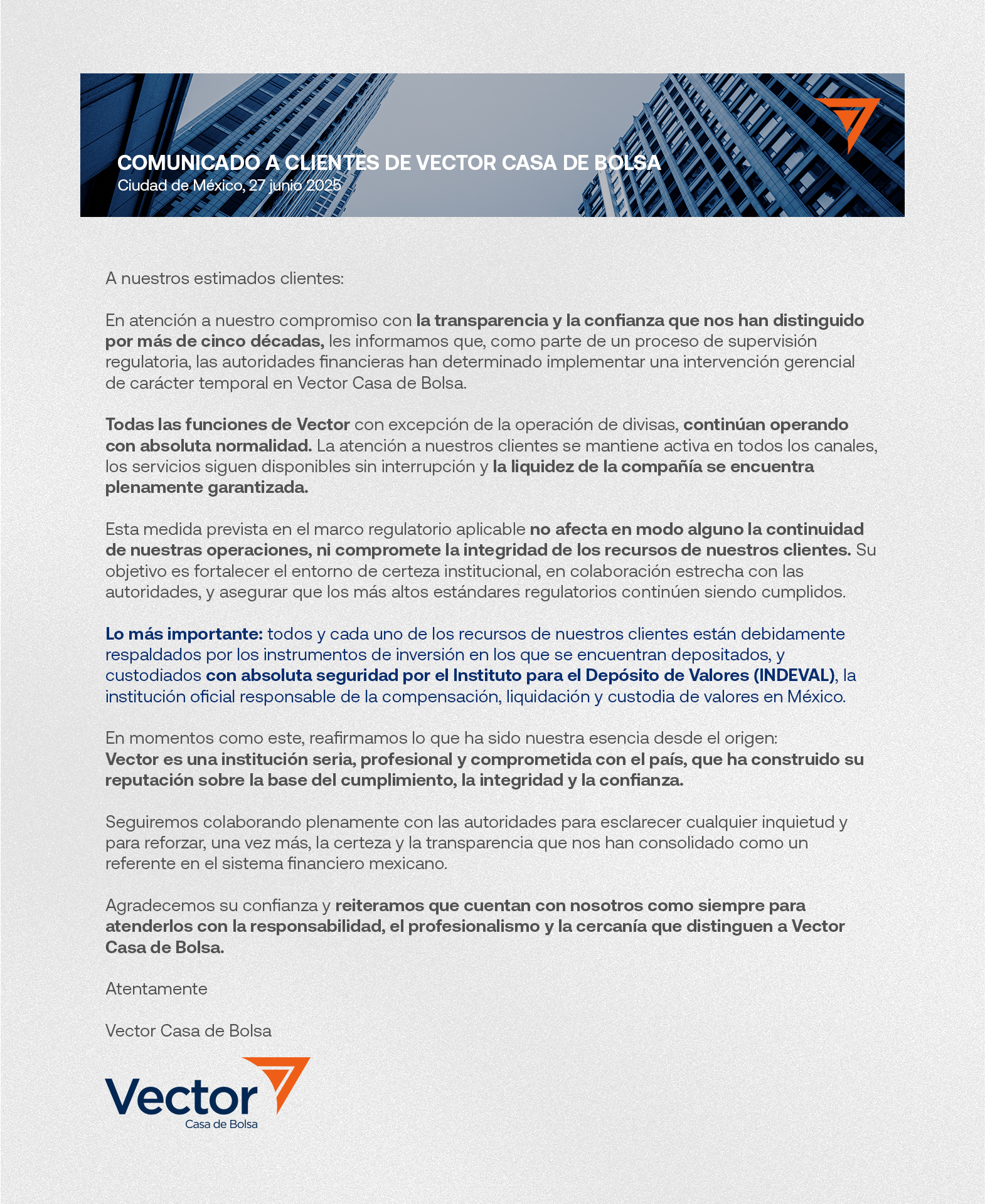 En medio del proceso de supervisión regulatoria, Vector reafirma su solidez: todas sus funciones, excepto la operación de divisas, continúan con total normalidad tras sanción del Tesoro de EU