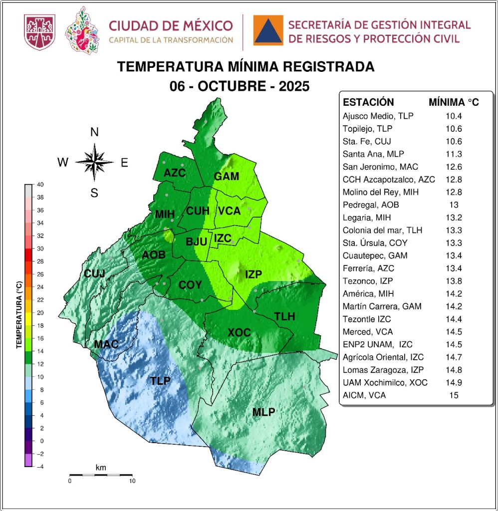 Asimismo, la temperatura mínima en la CDMX será de 12 a 14 °C y la máxima de 20 a 22 °C.