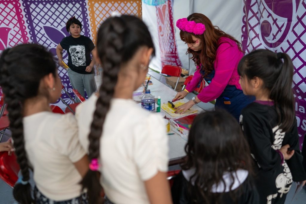 Los talleres de artes plásticas y manualidades mantuvieron a las infancias entretenidas: desdeColgante de calaverita estilo mosaico, con Telma Ledesma, hasta Mundos superpuestos; cada actividad invitó a tocar, crear y aprender. Por ejemplo, en algunas zonas era notorio como los aromas dulces de chocolate, jamoncillos y pan de muerto se mezclaban con la risa de niñas y niños y el entusiasmo de los padres en cada taller.