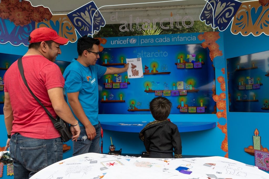 “Es la primera vez que vengo a la Feria y me encantó todo, desde los cuentos hasta los talleres. Lo que más me gusta son las ofrendas, muy coloridas y detalladas que parecen cobrar vida”, dijo Alejandra, de 25 años, mientras su sobrino corría por los jardines del Cenart.