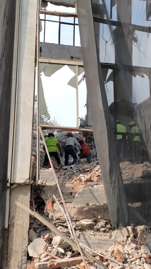 El edificio que se encontraba en proceso de demolición se derrumbó cerca de las 1:39 de la tarde, por lo que al último Corte llevarían ya casi cuatro horas bajo los escombros.