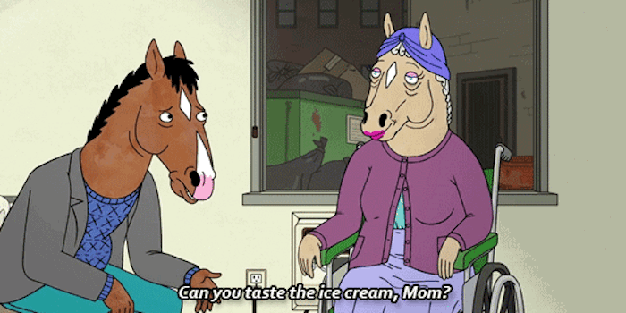 “Lo que sé sobre ser bueno lo aprendí en la tele”, dirá también el protagonista en un episodio ambientado en un funeral que a buen seguro se convertirá en uno de los más comentados de la ficción. “En las series, hay personajes que se preocupan por los demás con gestos sorprendentes. Y creo que parte de mí sigue creyendo que el amor es eso. Pero en la vida real, un gran gesto no es suficiente. No puedes cagarla en todo y luego lanzarte al mar a por tu mejor amigo, o resolver un misterio en Kansas. Hay que hacerlo todos los días, y eso es dificilísimo”, reflexionará BoJack. Al tiempo que habla de su trauma, establece un diálogo de tú a tú con espectador, como si un monólogo de stand-up comedy se tratase, sobre las expectativas vitales que la cultura pop nos ha hecho desear, o incluso creer merecer. “Cuando eres un niño te convences de que un gran gesto puede ser suficiente. Yo esperaba eso. Y sigo esperando”.