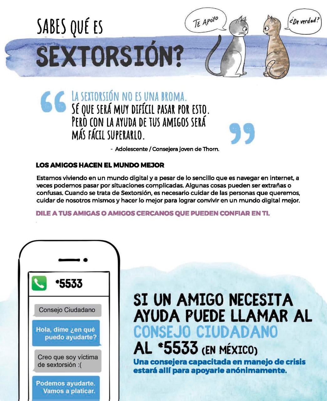 El Consejo Ciudadano de la Ciudad de México, en conjunto con Facebook, la Red por los Derechos de la Infancia en México y la Red Latinoamericana y Caribeña por la Defensa de los Derechos de los Niños, Niñas y Adolescentes, impulsan de manera conjunta una campaña para prevenir y atender la sextorsión.