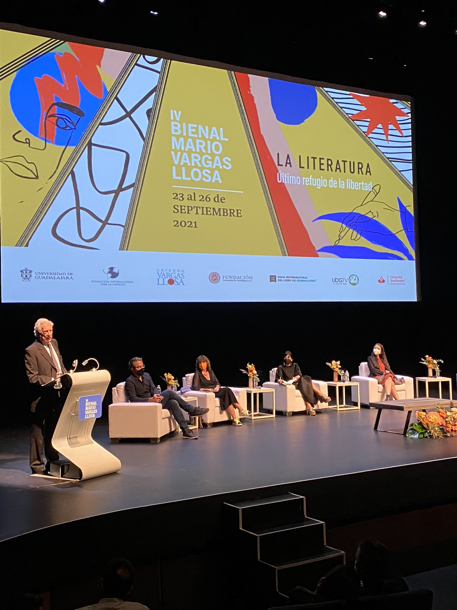 Ayer dio por comenzada la cuarta edición de la Bienal de Novela Mario Vargas Llosa, en el Conjunto Santander de Artes Escénicas. La ceremonia de inauguración arrancó con palabras de Ricardo Villanueva Lomelí, rector de la Universidad de Guadalajara, anfitriones del certamen literario. Villanueva recordó las palabras de Enrique Krauze cuando Vargas Llosa recibió el Nobel -en 2010-: “Es un acto de justicia a la literatura y a la libertad”, a propósito del título de las Bienal, “La literatura, último refugio de la libertad”.