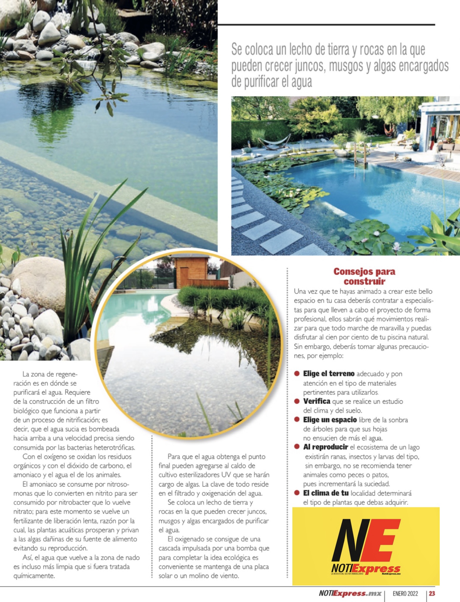 Una vez que te hayas animado a crear este bello espacio en tu casa deberás contratar a especialistas para que lleven a cabo el proyecto de forma profesional, ellos sabrán qué movimientos realizar para que todo marche de maravilla y puedas disfrutar al cien por ciento de tu piscina natural. Sin embargo, deberás tomar algunas precauciones, por ejemplo: