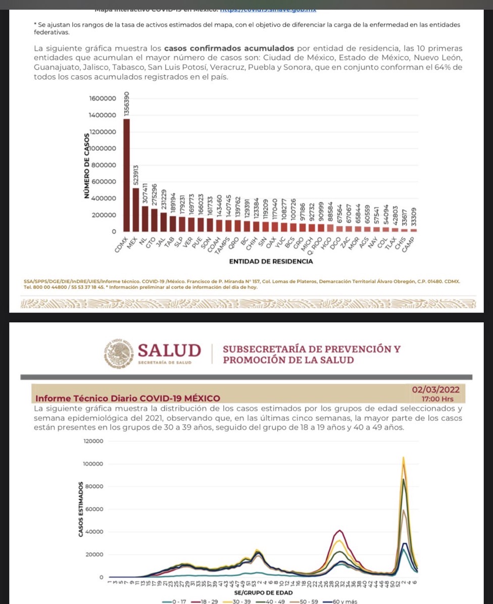 México reportó este miércoles 304 nuevas muertes y 12 mil 342 contagios de COVID, con lo que totaliza cinco millones 534 mil 086 casos y acumula 318 mil 531 decesos en total, informó la Secretaría de Salud.