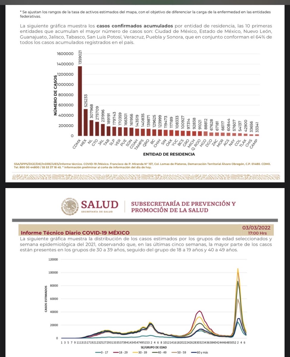 México reportó este jueves 461 nuevas muertes y 10 mil 558 contagios por el COVID-19, con lo que totaliza cinco millones 544 mil 644 casos y acumula 319 mil 296 decesos en total, informó la Secretaría de Salud.