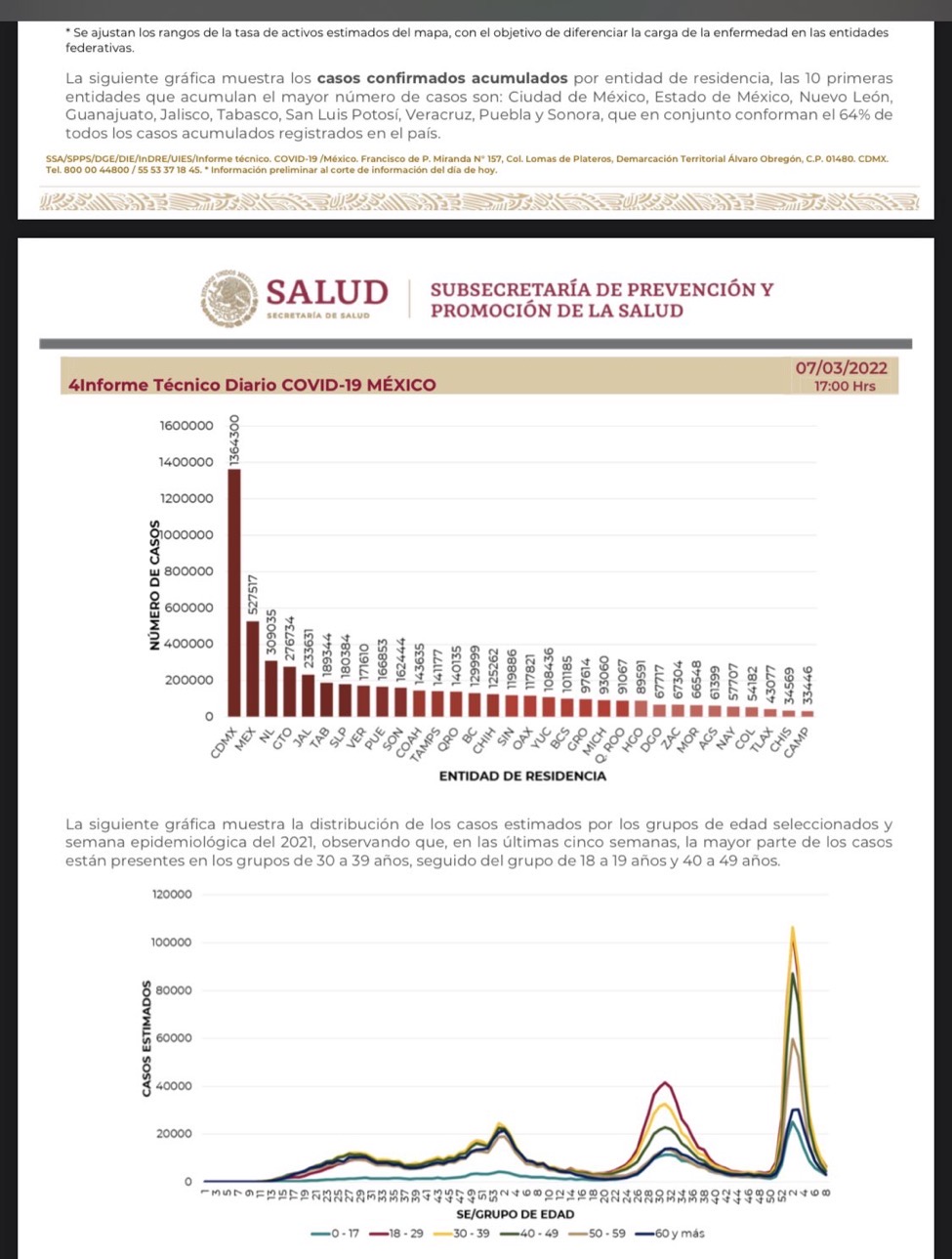México reportó este lunes 42 nuevas muertes y mil 684 contagios por el COVID, con lo que totalizacinco millones 566 mil 669 casos y acumula 319 mil 901 decesos en total, informó la Secretaría de Salud.