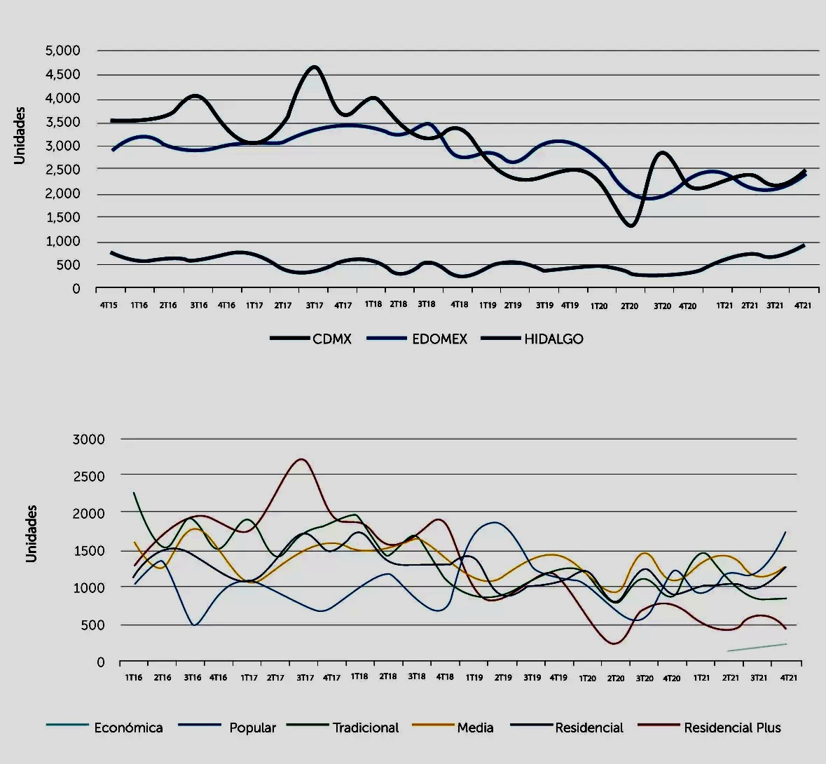 A pesar de estos costos, al 4T2021 en la Zona Metropolitana de la Ciudad de México se vendieron cinco mil 817 unidades, el 43% corresponde a la CDMX y 57% a los municipios conurbados del Estado de México e Hidalgo, según el último informe de Tinsa.