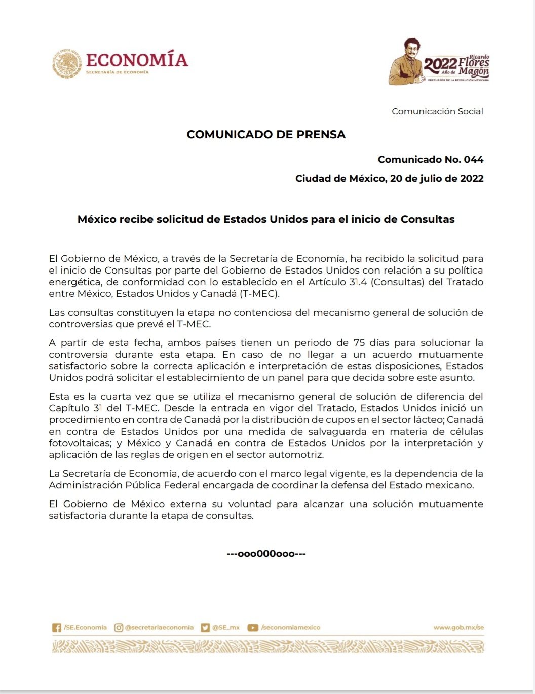 Ante la solicitud a consultas de Estados Unidos por el cambio de la política energética de México dentro del Tratado entre México, Estados Unidos y Canadá (T-MEC), el presidente Andres Manuel Lopez Obrador aseguró que esto es “una consulta, nada más”, “no hay ningún problema” y afirmó que todo lo que su gobierno hace en materia energética es conforme a la Constitución.
