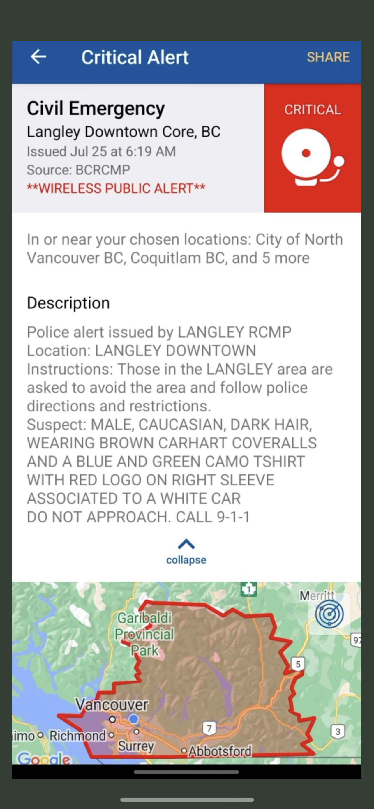 Posteriormente, la policía emitió una alerta de teléfono celular diciendo que un sospechoso estaba bajo custodia. Sin embargo, la alerta decía que la policía todavía estaba tratando de confirmar si el hombre era el único sospechoso involucrado.