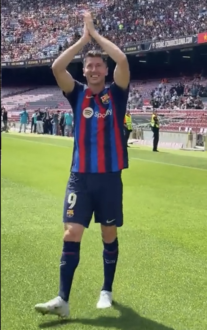 El delantero polaco fue presentado en el Camp Nou ante más de 30 mil seguidores del Barcelona.
