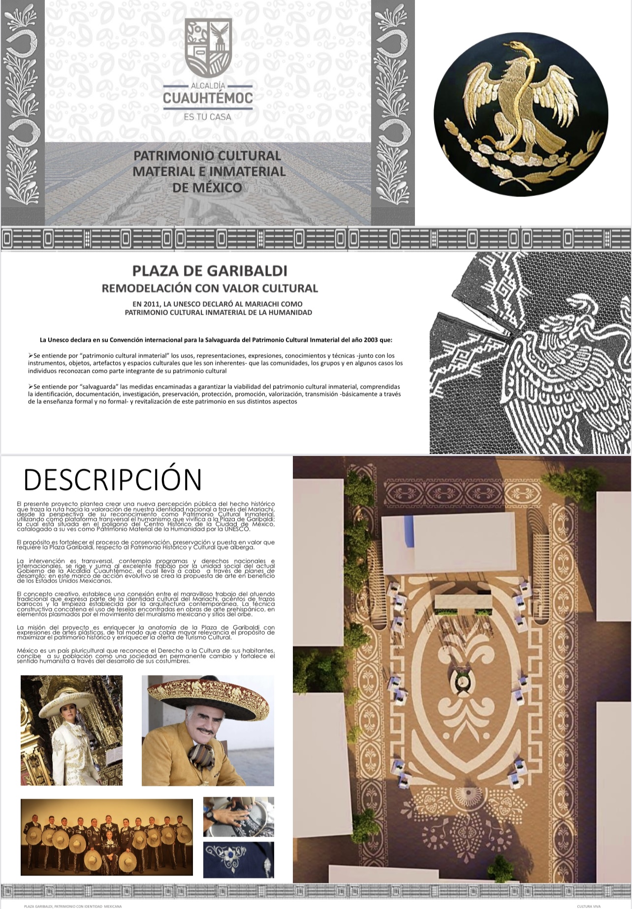 Asimismo, dijo, se ha avanzado en la iluminación con un Sendero Seguro y se trabaja en el Proyecto denominado Plaza Garibaldi Remodelación con Valor Cultural porque se busca crear una nueva percepción pública del hecho histórico que traza la ruta hacia la valoración de nuestra identidad nacional a través del Mariachi, desde la perspectiva de su reconocimiento como Patrimonio Cultural Inmaterial, utilizando como plataforma transversal el humanismo que vivifica a la Plaza de Garibaldi.