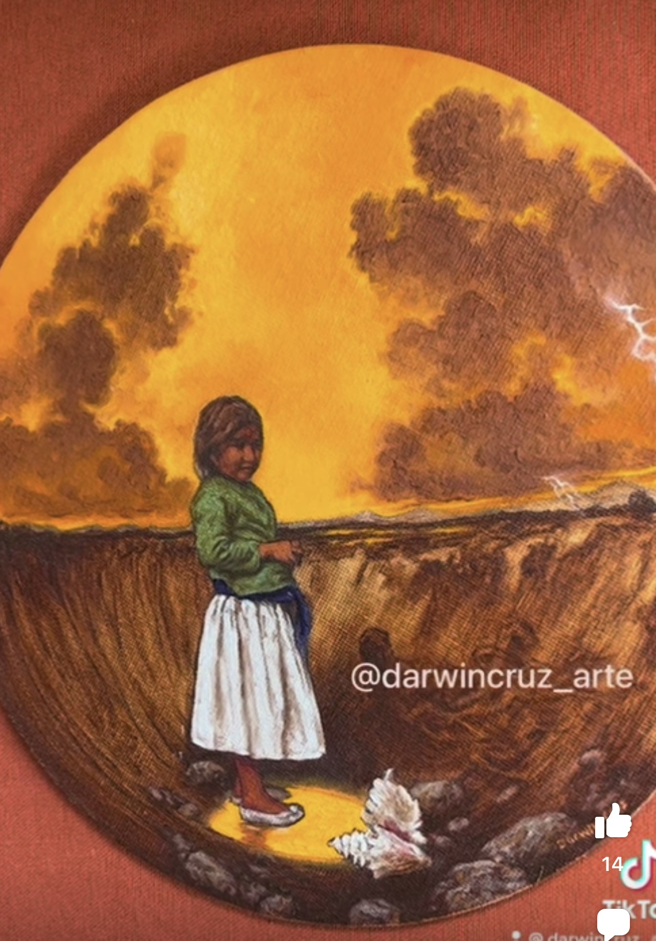 Además, Darwin Cruz comenta que en sus pinturas es posible apreciar, a través de su paleta de colores, las composiciones y las imágenes, referencias claras al lugar en donde creció, los retos a los que se enfrentó al migrar de su comunidad a una ciudad como Tuxtla Gutiérrez, así como la lucha por conservar su identidad como maya chol.