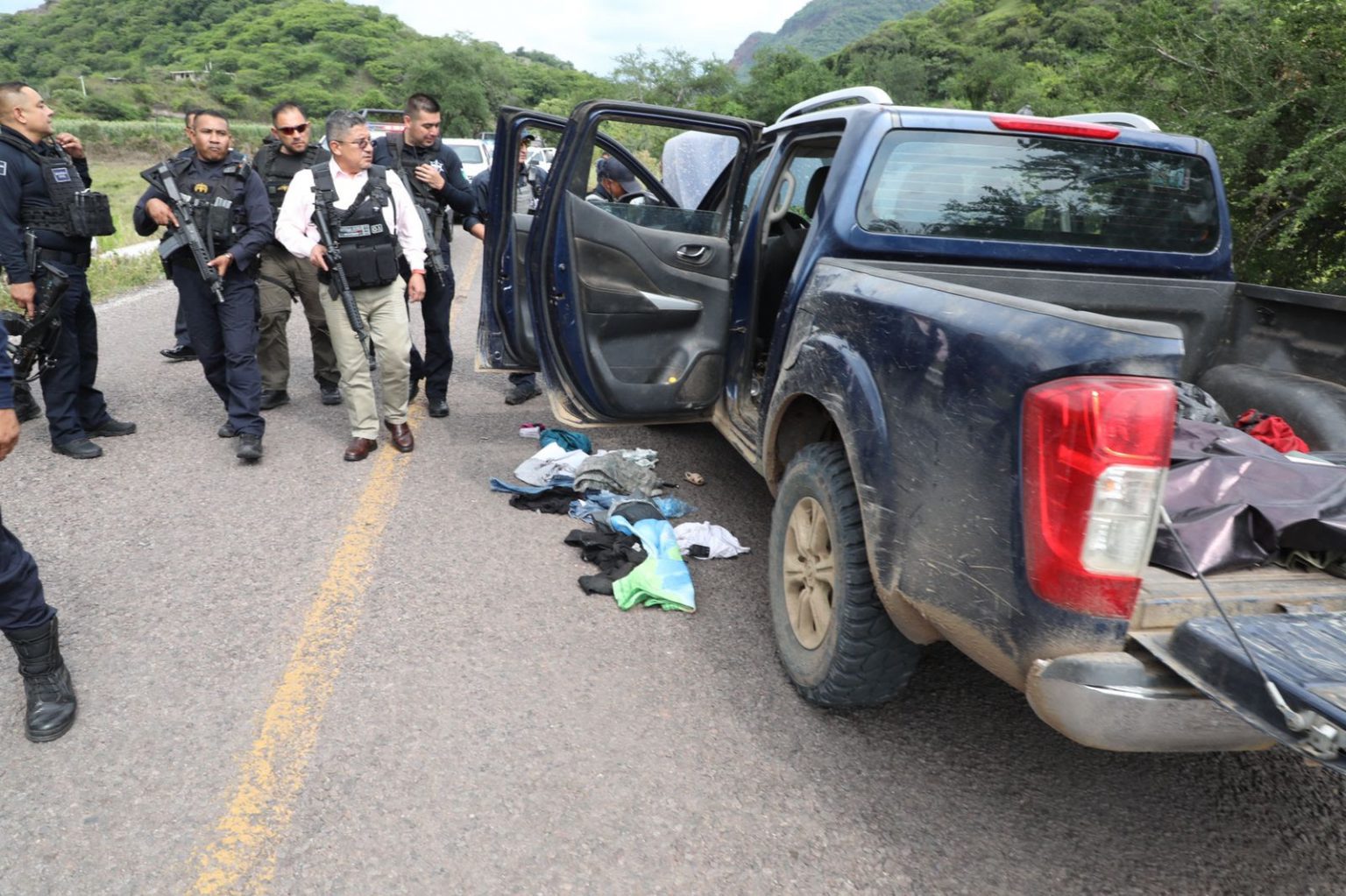 Al llegar al lugar, específicamente en la plaza, se localizaron los cuerpos sin vida de ocho hombres, quienes presentaban heridas producidas por disparos de arma de fuego. En el sitio, el personal pericial ubicó, fijó, recolectó y embaló indicios balísticos que serán analizados por expertos. Tras diligencias, los cuerpos fueron trasladados al Servicio Médico Forense para que se practique la necropsia de ley y continuar con los actos de investigación a efecto de determinar las circunstancias en las que se registraron los hechos y lograr su esclarecimiento.