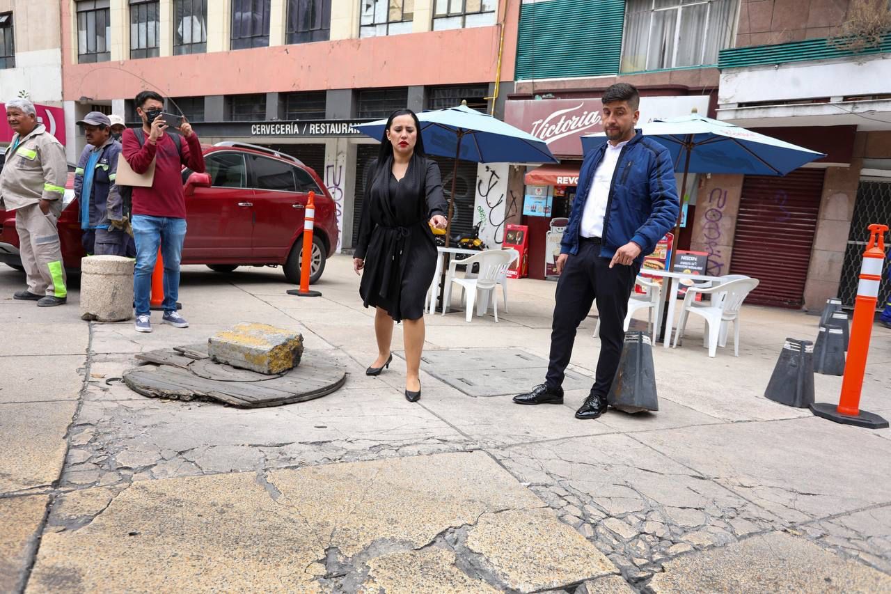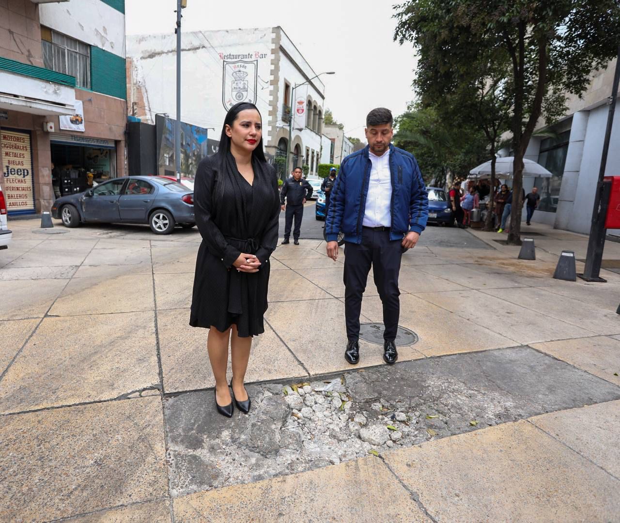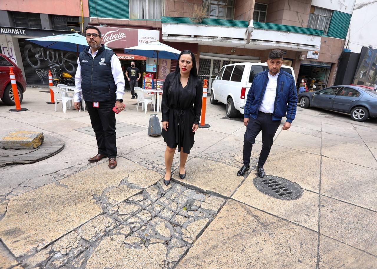La Alcaldesa caminó por el circuito del Monumento a la Revolución a fin de evidenciar los daños al mobiliario urbano que incluso ponen en riesgo la integridad física de los transeúntes.