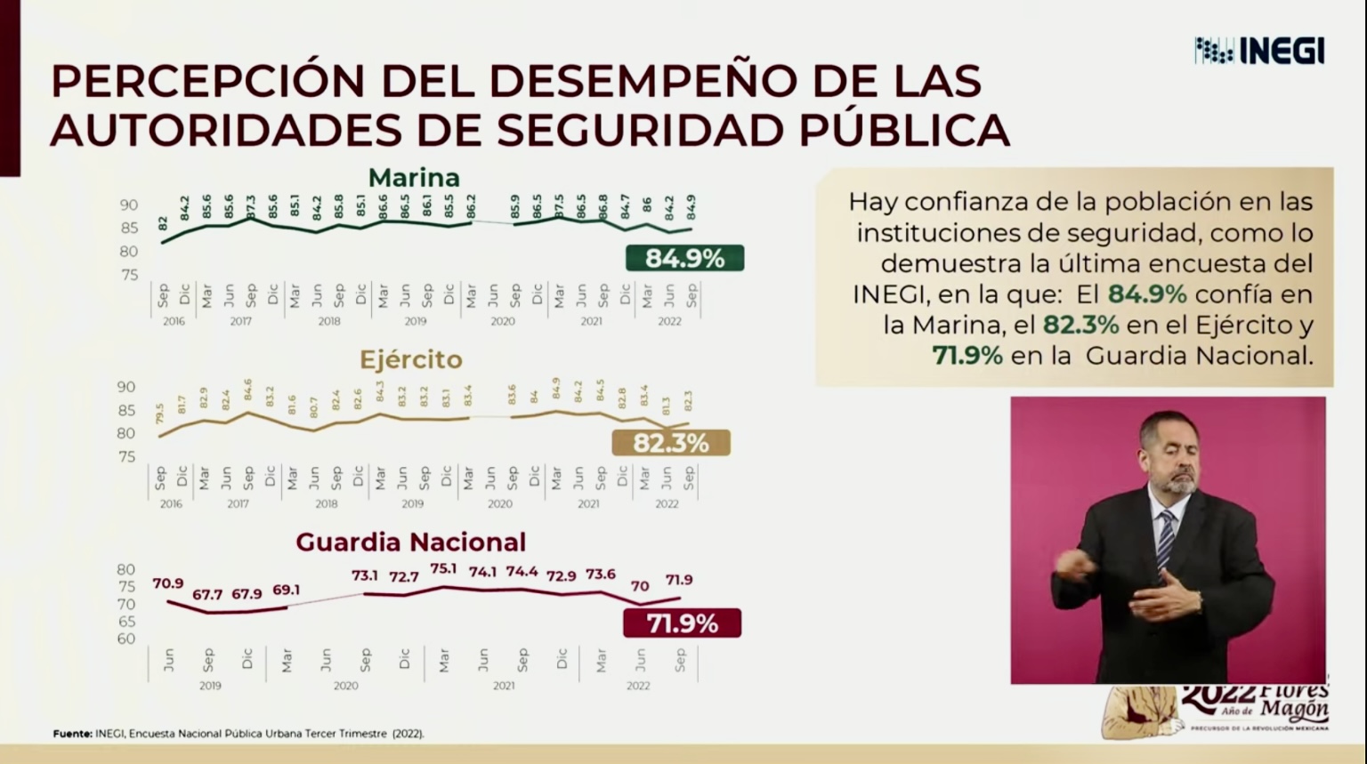 “Y es percepción, pero ayuda mucho a entender que la gente pues sí está sintiendo que estamos haciendo un esfuerzo para garantizarles la paz y la tranquilidad, y la verdad que estamos trabajando para eso todos los días, con profesionalismo, de manera coordinada”, indicó.