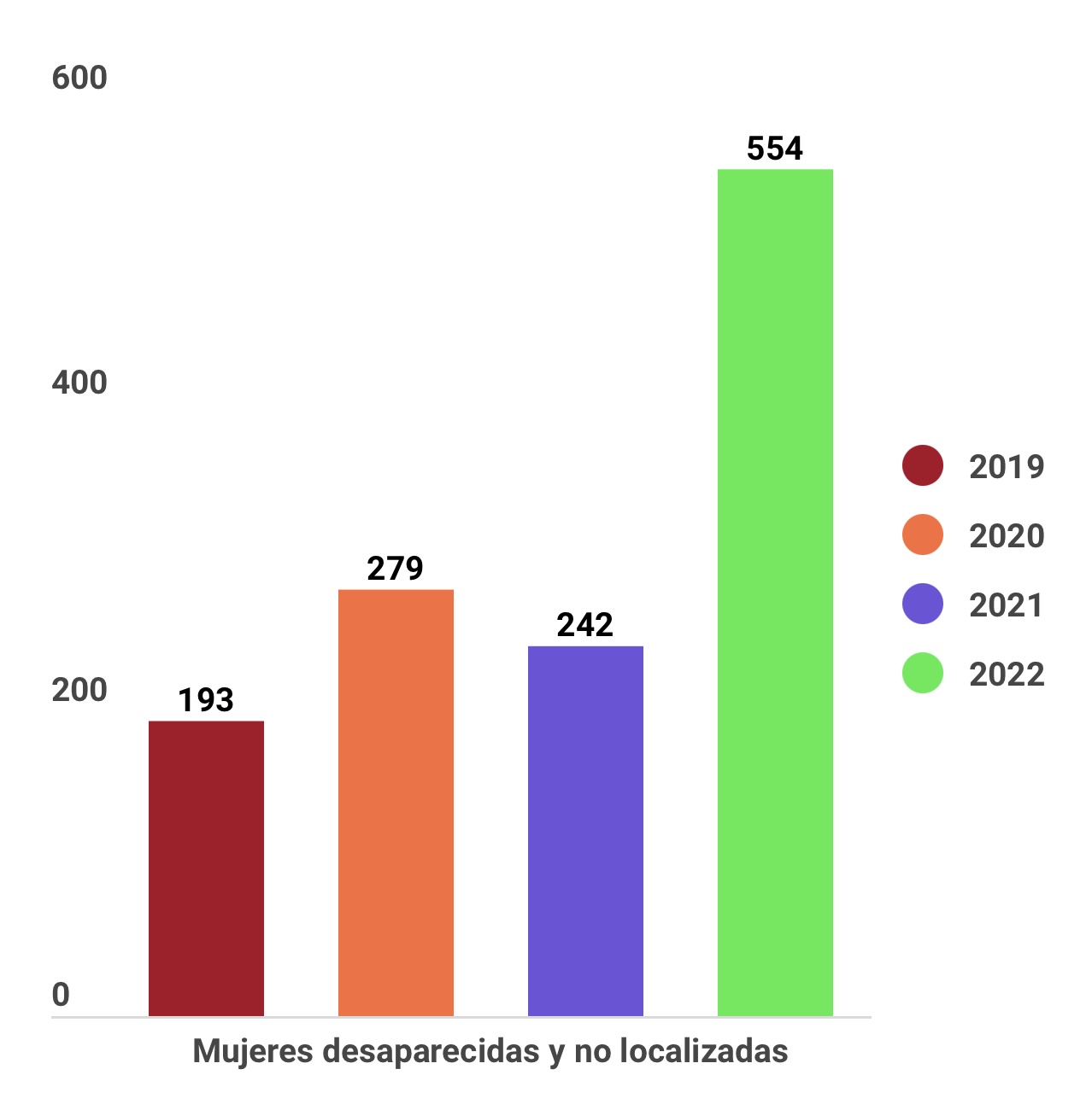 La capital ocupa el primer lugar a nivel nacional en casos reportados de mujeres desaparecidas y no localizadas durante 2022, con 554 casos.