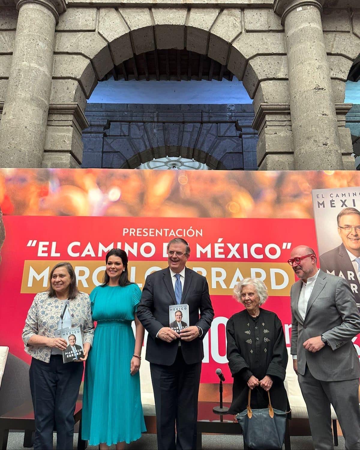En el Palacio de Minería en la presentación de su libro el canciller estuvo acompañado por su esposa Rosalinda Bueso, sus hijos, y cercanos colaboradores de décadas que ahora son parte de su equipo, entre ellos la subsecretaria de Relaciones Exteriores (SRE), Martha Delgado, la senadora Malú Micher, Alejandra Moreno Toscano y Leticia Bonifaz, exconsejera jurídica de la ciudad.